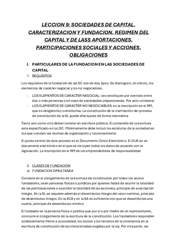 SOCIEDADES DE CAPITAL (I). CARACTERIZACIÓN Y FUNDACIÓN. RÉGIMEN DEL CAPITAL Y DE LAS APORTACIONES. PARTICIPACIONES SOCIALES Y ACCIONES. OBLIGACIONES