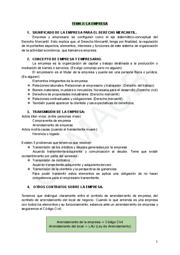 Esquema del tema 1 de derecho de la empresa para tener las ideas mas claras