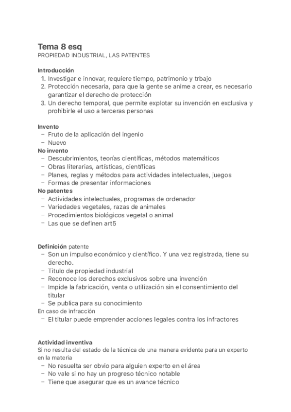 He publicado nuevos apuntes de 1º Derecho de la Empresa: TEMA 8: PATENTES.pdf