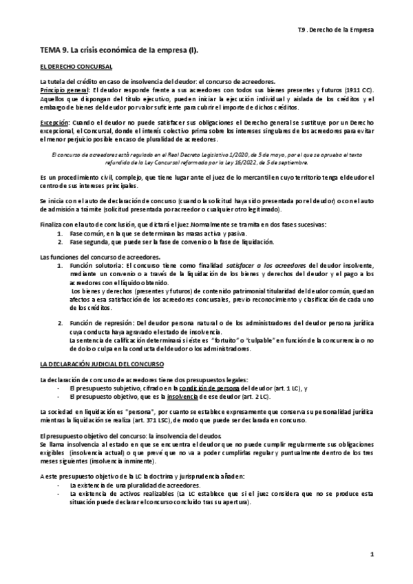 He publicado nuevos apuntes de 1º Derecho de la Empresa: Tema 9.1. La crisis económica de la empresa.pdf