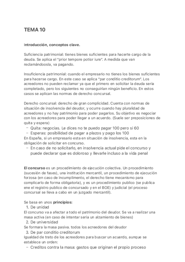 He publicado nuevos apuntes de 1º Derecho de la Empresa: Tema 10. La crisis del empresario.pdf