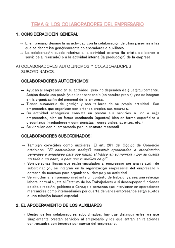 He publicado nuevos apuntes de 1º Derecho de la Empresa: TEMA 6: LOS COLABORADORES DEL EMPRESARIO.pdf