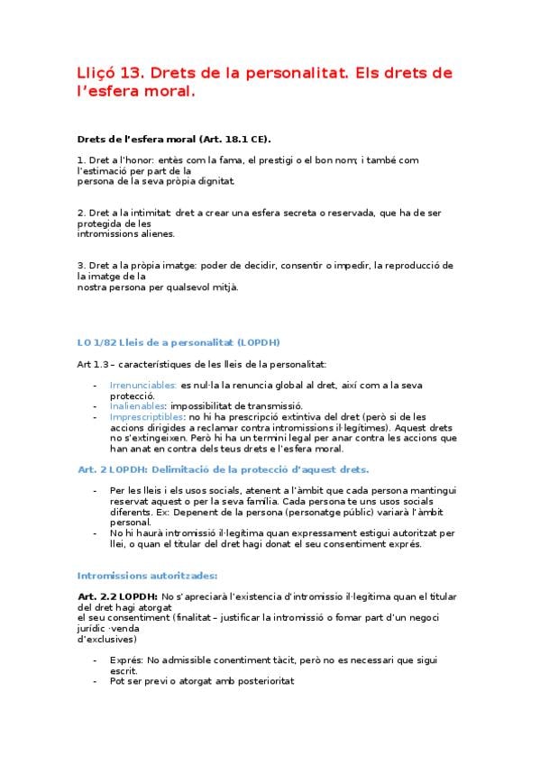 Apunts dret de la persona primer parcial (lliçó 1 - 8) extrets directament del manual Dret civil. Part general i dret de la persona d’Antoni Vaquer