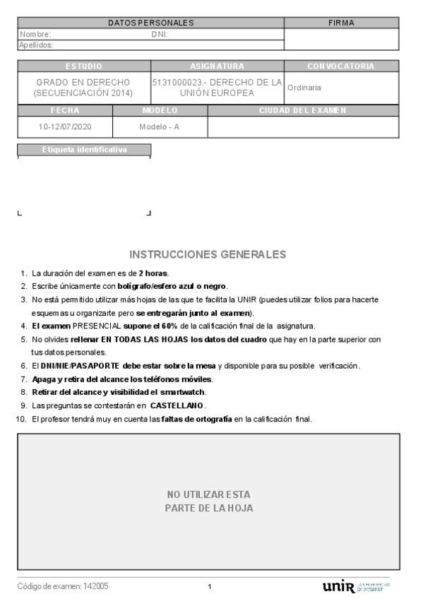 Compilación de exámenes de Derecho de la UE. ¡OJO! las respuestas marcadas pueden contener errores.