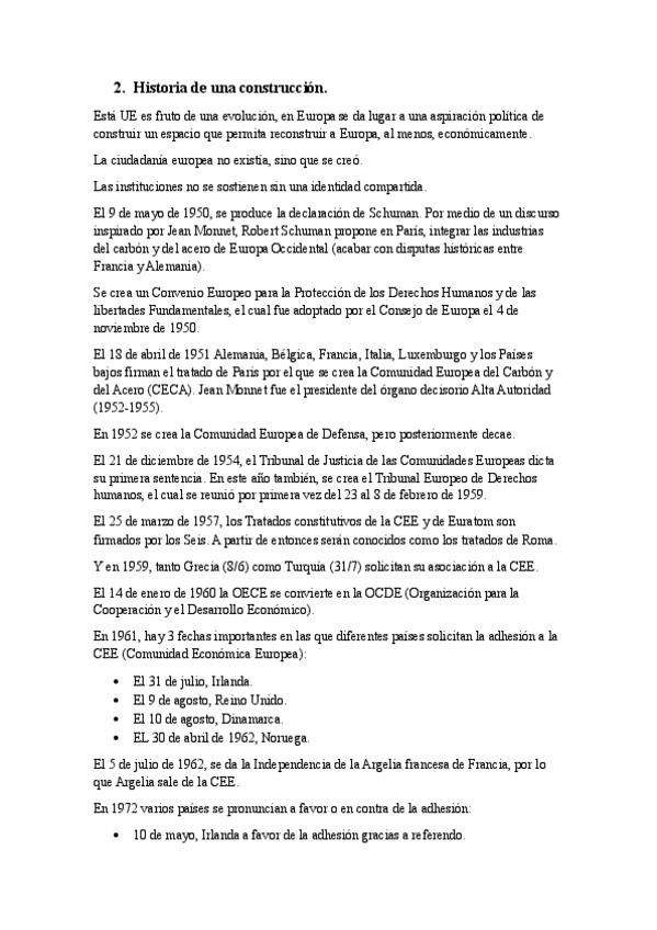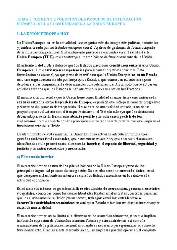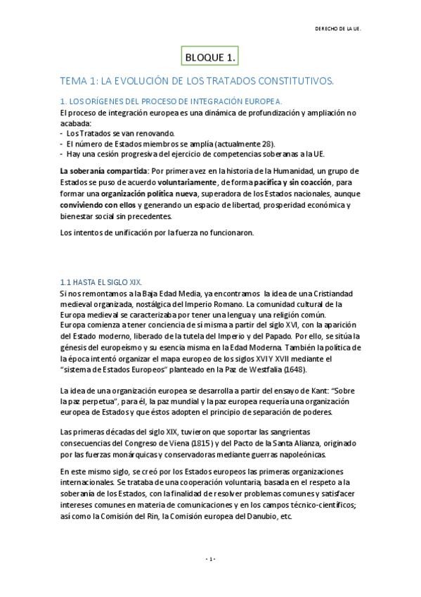 Apuntes sobre el tema 1 unión europea: Origen; evolución histórica, principales tratados y adhesiones y principios generales del derecho de la unión europea.