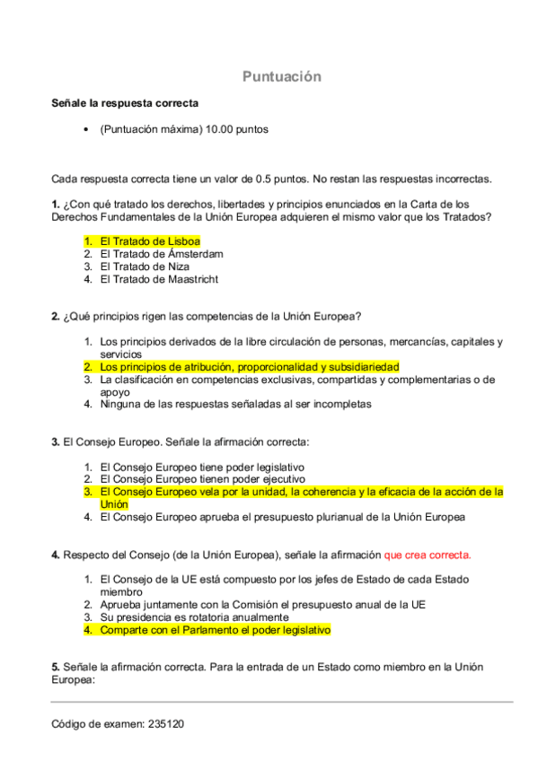 Compilación de exámenes de Derecho de la UE. ¡OJO! las respuestas marcadas pueden contener errores.