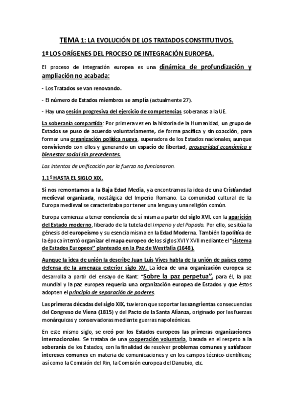 He publicado nuevos apuntes de 3º Derecho de la Unión Europea: 1º PARCIAL - Temas 1 a 4