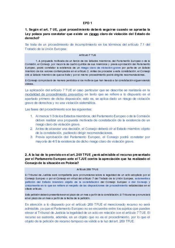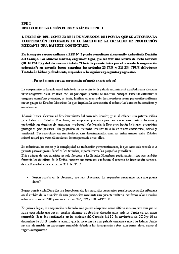 He publicado nuevos practicas de 5º Derecho de la Unión Europea: EPD 2 derecho union europea.docx