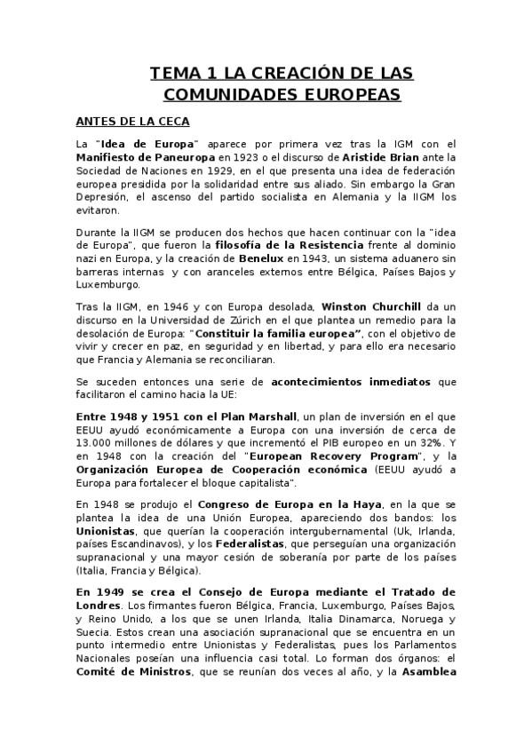 TEMA 1 y 2 - El proceso de integracion Europea y Las instituciones
