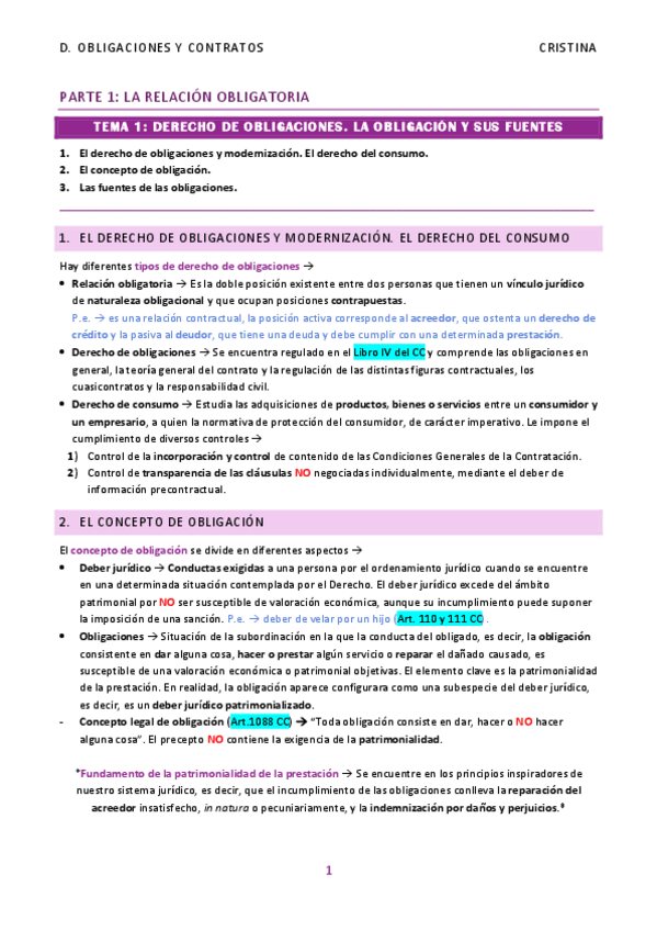 Obligaciones y contratos. Cristina Argelich