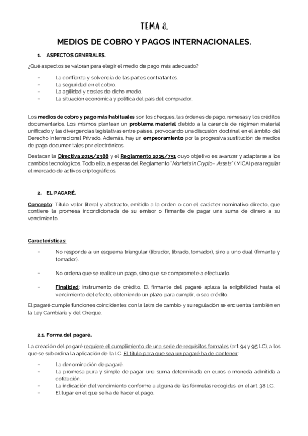 He publicado nuevos apuntes de 4º Derecho del Comercio Internacional: 8. Instrumentos internacionales de pago y financiación.pdf