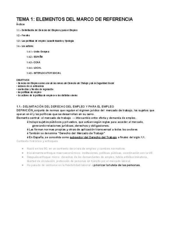 Tema 1 de la asignatura derecho del empleo actualizados a los nuevos profesores