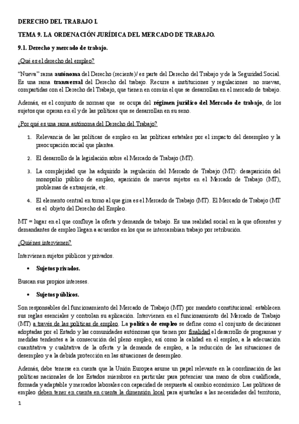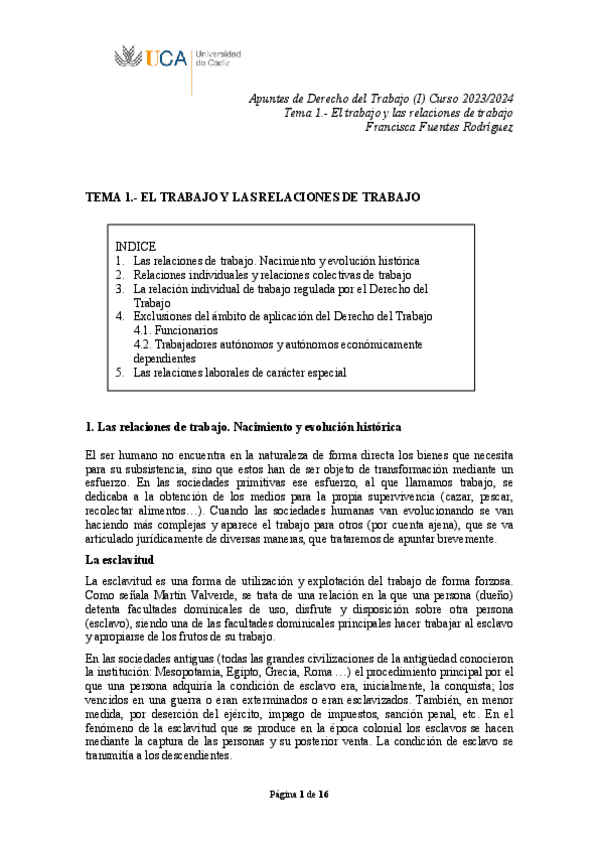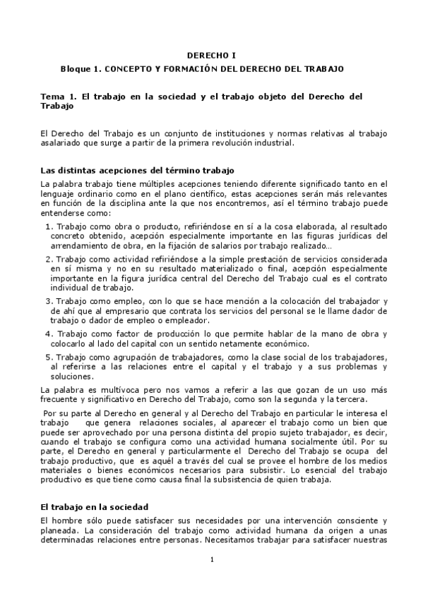 TEMARIO COMPLETO DCHO. TRABAJO I (PROFESORA)