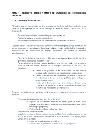 Temario completo Derecho del Trabajo I