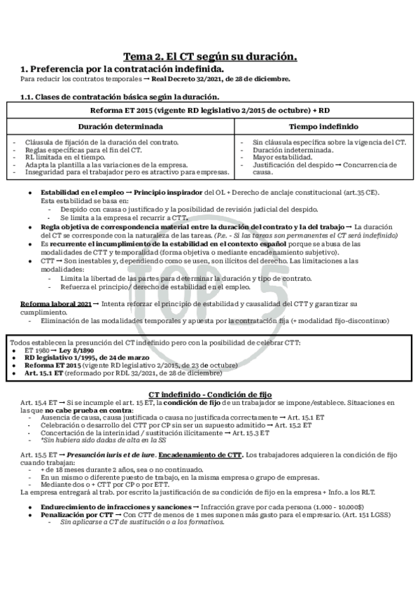 He publicado nuevos apuntes de 2º Derecho del Trabajo II: Tema 2 - El CT según su duración.pdf