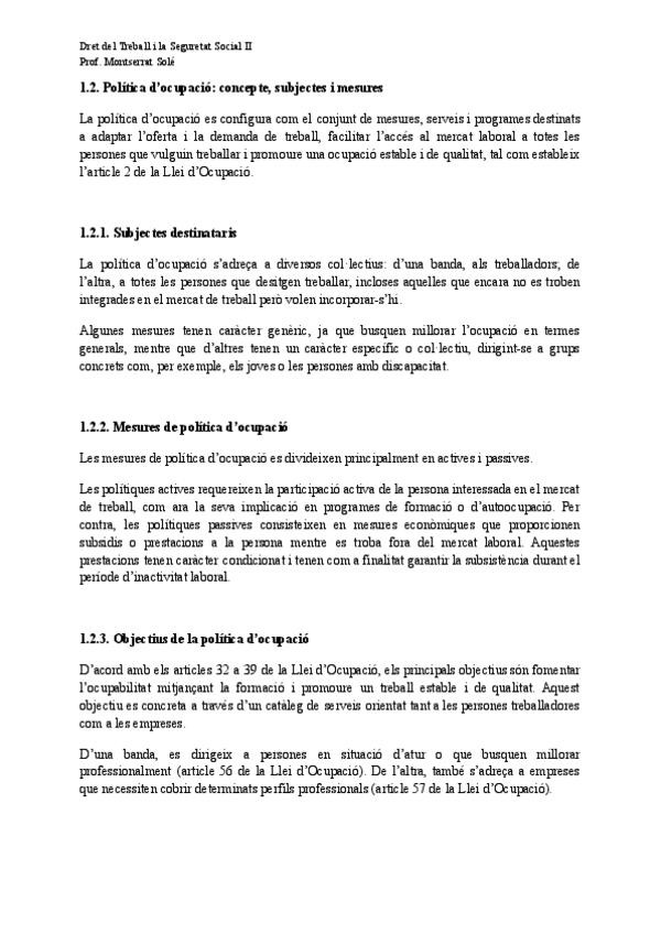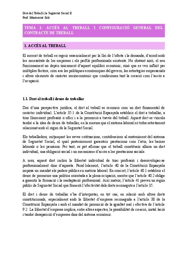 Apunts tema 1 de Dret del Treball i Seguretat Social II amb la professora Montserrat Solé