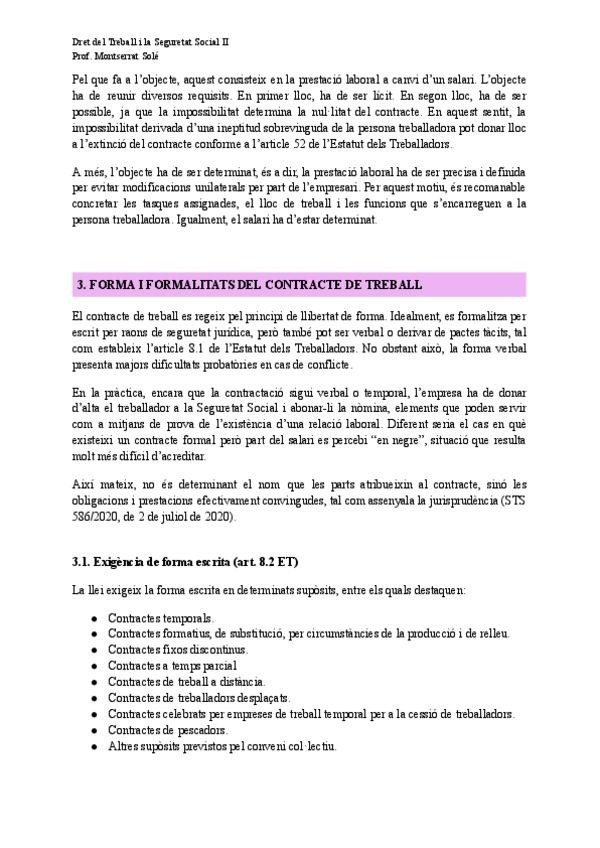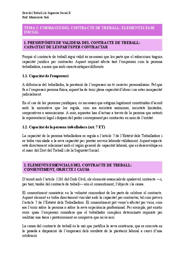 Apunts tema 2 de Dret del Treball i Seguretat Social II amb la professora Montserrat Solé