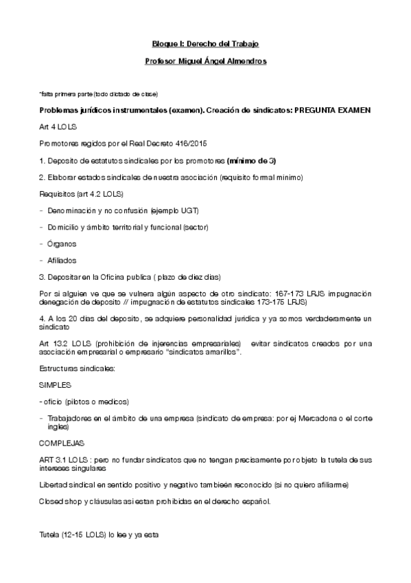 ¿Hay apuntes de Derecho del Trabajo de Miguel Ángel Almendros González?