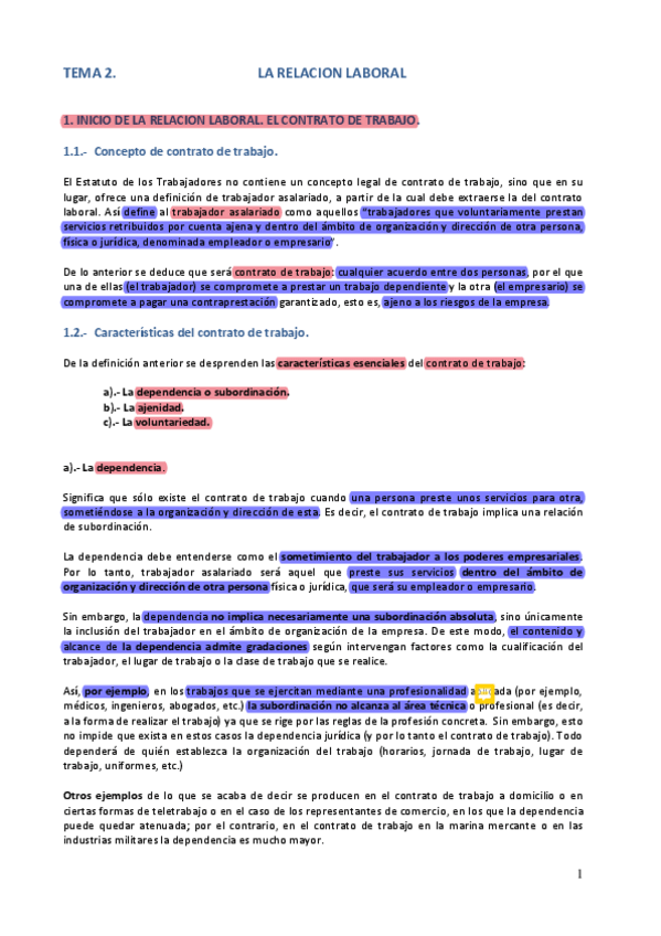 TEMARIO, APUNTES Y EJERCICIOS DERECHO DEL TRABAJO SUBRAYADO Y CON NOTAS