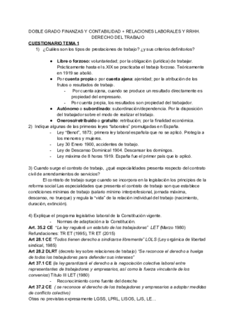 CUESTIONARIOS DERECHO DEL TRABAJO