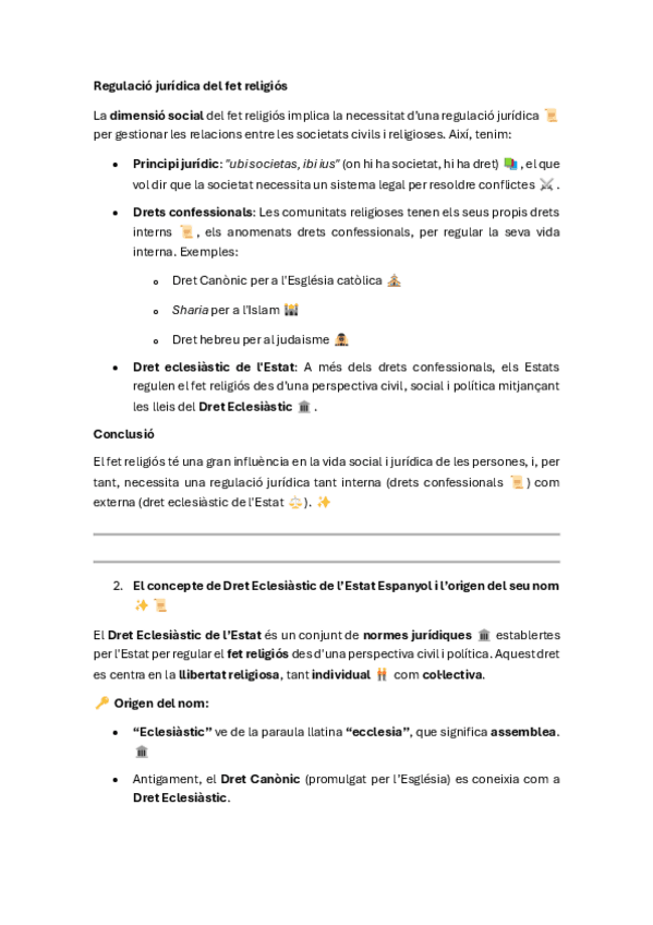 Apuntes completos del tema 1: EL DERECHO ECLESIASTICO, ordenados y resumidos del manual de la clase de Derecho Eclesiástico del Estado curso 2025/26 de Alberto Aldamunde Miranda, efectivos para aprobar parciales y examen final