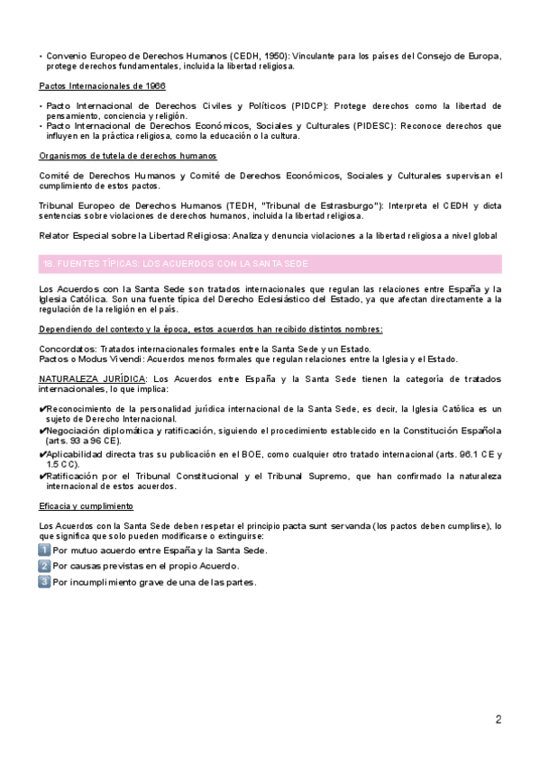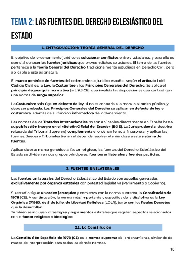 Apuntes completos del tema 2: FUENTES, ordenados y resumidos del manual de la clase de Derecho Eclesiástico del Estado curso 2025/26 de Alberto Aldamunde Miranda, efectivos para aprobar parciales y examen final