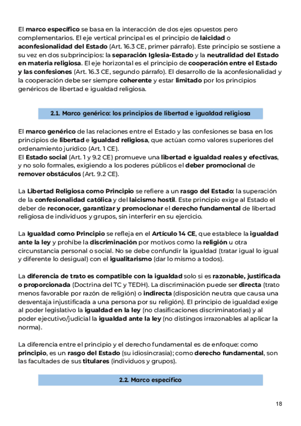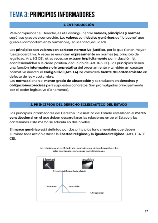 Apuntes completos del tema 3: PRINCIPIOS, ordenados y resumidos del manual de la clase de Derecho Eclesiástico del Estado curso 2025/26 de Alberto Aldamunde Miranda, efectivos para aprobar parciales y examen final