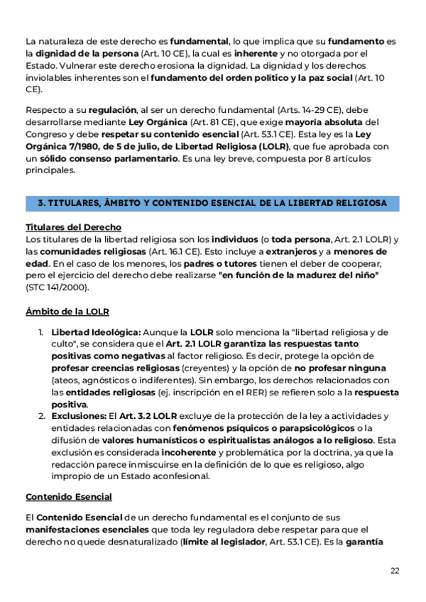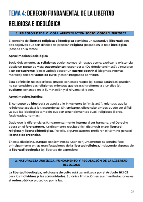 Apuntes completos del tema 4: EL DERECHO DE LIBERTAD RELIGIOSA Y SU PROTECCIÓN, ordenados y resumidos del manual de la clase de Derecho Eclesiástico del Estado curso 2025/26 de Alberto Aldamunde Miranda, efectivos para aprobar parciales y examen final
