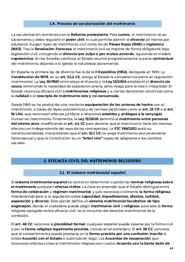 Apuntes completos del tema 5: SISTEMA MATRIMONIAL, ordenados y resumidos del manual de la clase de Derecho Eclesiástico del Estado curso 2025/26 de Alberto Aldamunde Miranda, efectivos para aprobar parciales y examen final