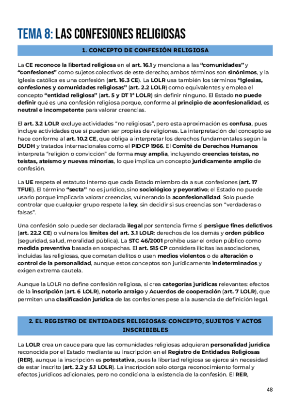 Apuntes completos del tema 8: POSICIÓN JURÍDICA DE LAS CONFESIONES, ordenados y resumidos del manual de la clase de Derecho Eclesiástico del Estado curso 2025/26 de Alberto Aldamunde Miranda, efectivos para aprobar parciales y examen final
