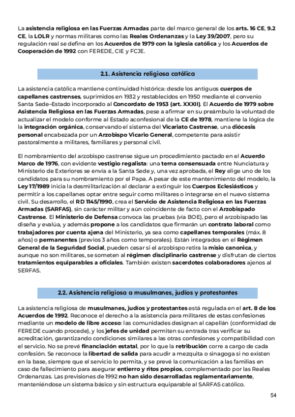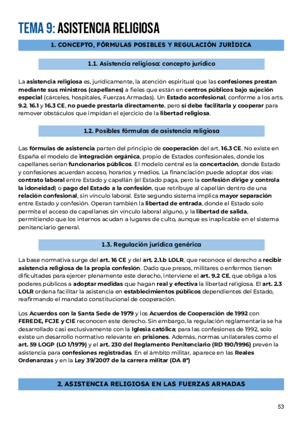 Apuntes completos del tema 9: ASISTENCIA RELIGIOSA Y MINISTROS DE CULTO, ordenados y resumidos del manual de la clase de Derecho Eclesiástico del Estado curso 2025/26 de Alberto Aldamunde Miranda, efectivos para aprobar parciales y examen final