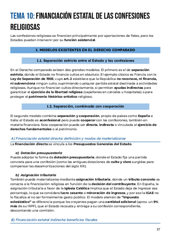 CreadoresApuntes completos del tema 10: RÉGIMEN ECONÓMICO, PATRIMONIAL Y FISCAL DE LAS CONFESIONES RELIGIOSAS, ordenados y resumidos del manual de la clase de Derecho Eclesiástico del Estado curso 2025/26 de Alberto Aldamunde Miranda, efectivos para aprobar parcia