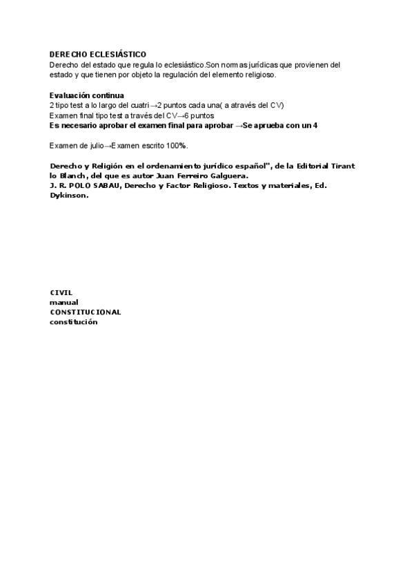 He publicado nuevos apuntes de 1º Derecho Eclesiástico del Estado: ECLESIASTICO-ASENSIO.pdf