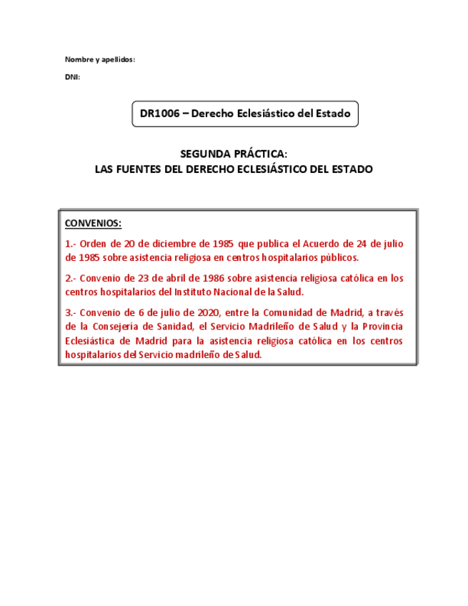 He publicado nuevos practicas de 1º Derecho Eclesiástico del Estado: Práctica tres.