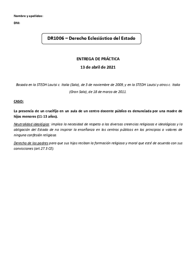 He publicado nuevos practicas de 1º Derecho Eclesiástico del Estado: 1a-entrega-de-practica-DR1006.pdf