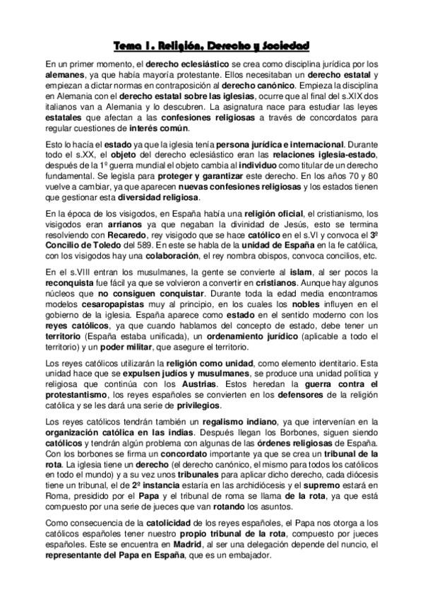 Derecho Eclesiástico del Estado (Temas 1 - 9)