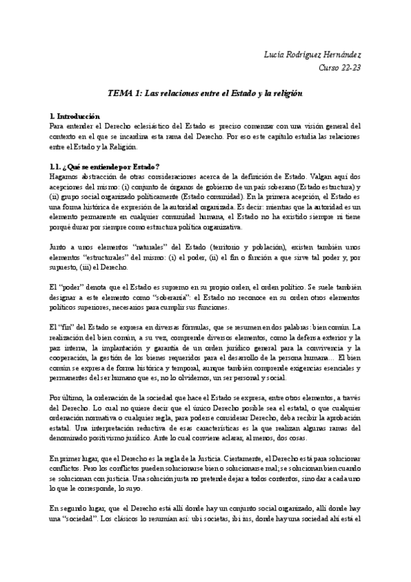 Apuntes Derecho Eclesiástico del Estado