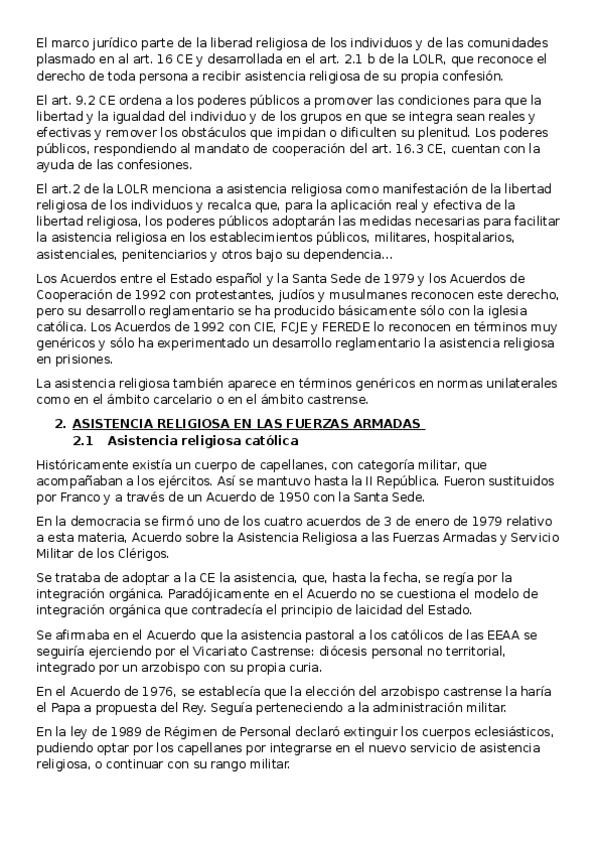 Apuntes completos del tema 9: ASISTENCIA RELIGIOSA Y MINISTROS DE CULTO, ordenados y resumidos del manual de la clase de Derecho Eclesiástico del Estado curso 2025/26 de Alberto Aldamunde Miranda, efectivos para aprobar parciales y examen final