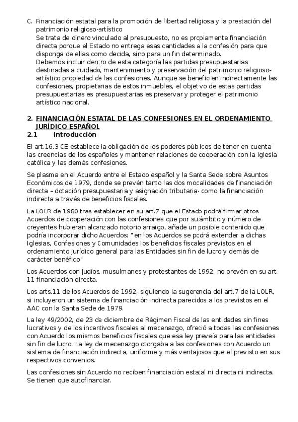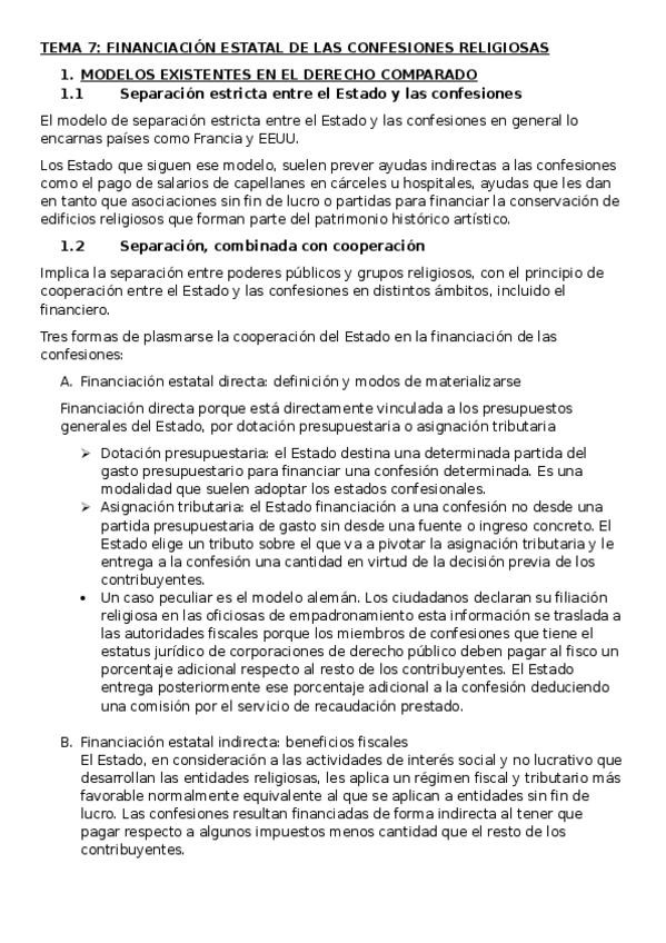 Apuntes completos del tema 10: RÉGIMEN ECONÓMICO, PATRIMONIAL Y FISCAL DE LAS CONFESIONES RELIGIOSAS, ordenados y resumidos del manual de la clase de Derecho Eclesiástico del Estado curso 2025/26 de Alberto Aldamunde Miranda, efectivos para aprobar parcia