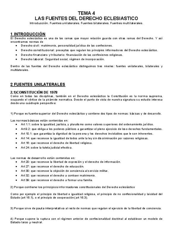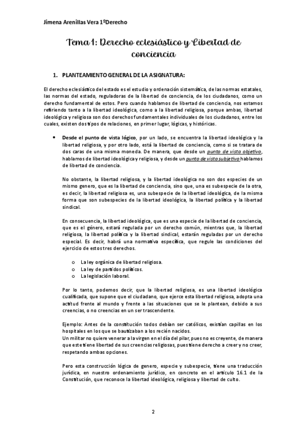 Apuntes completos de derecho eclesiástico que contiene todos los temas de la asigtura.
