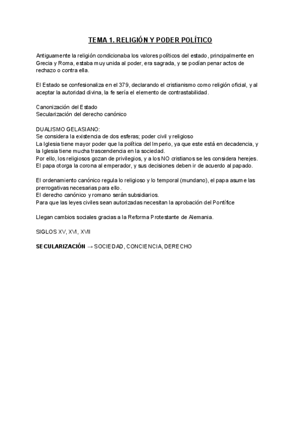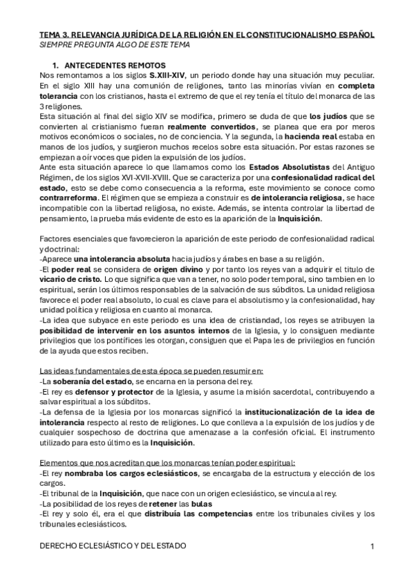 He publicado nuevos apuntes de 1º Derecho Eclesiástico del Estado: TEMARIO
