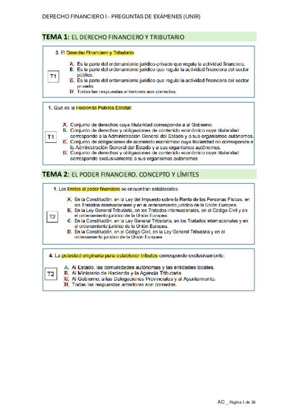 Recopilación de preguntas de exámenes de años anteriores de Derecho Financiero I.