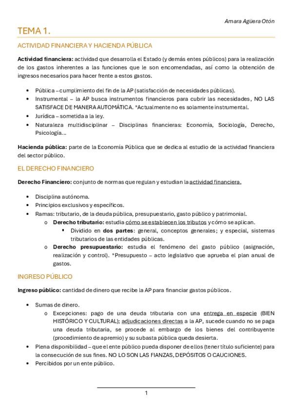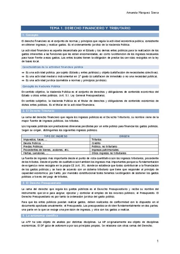 TEMA 1 DEL BLOQUE I DE DERECHO FINANCIERO. LOS APUNTES HAN SIDO REALIZADOS CONFORME AL MANUAL Y CON LAS ACLARACIONES DE LA PROFESORA EN CLASE