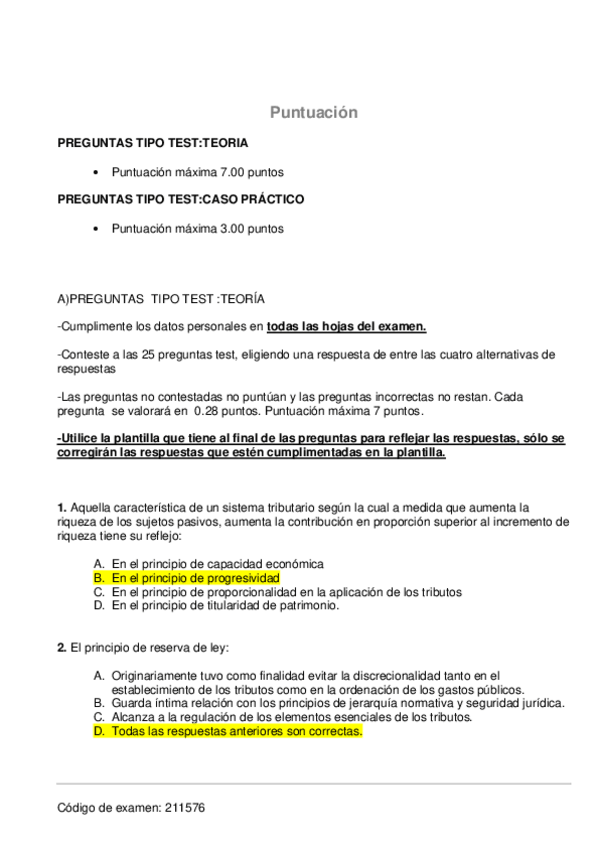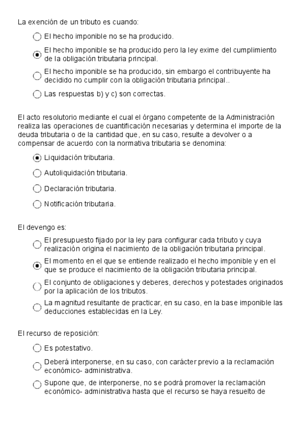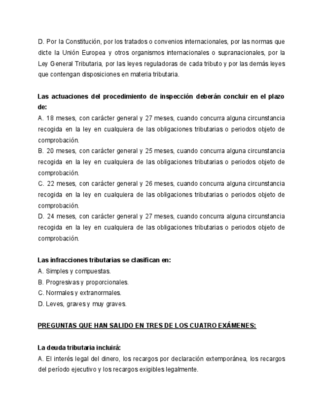 Recopilación de preguntas de exámenes de años anteriores de Derecho Financiero I.