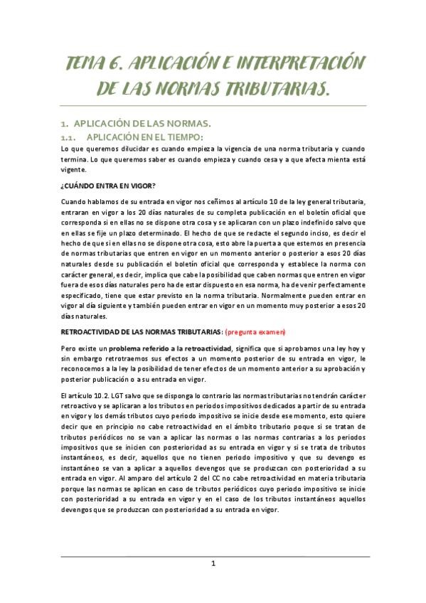 Apuntes del tema 6 de la asignatura Derecho Financiero y Tributario I con el profesor Ángel Baena, complementados con manual