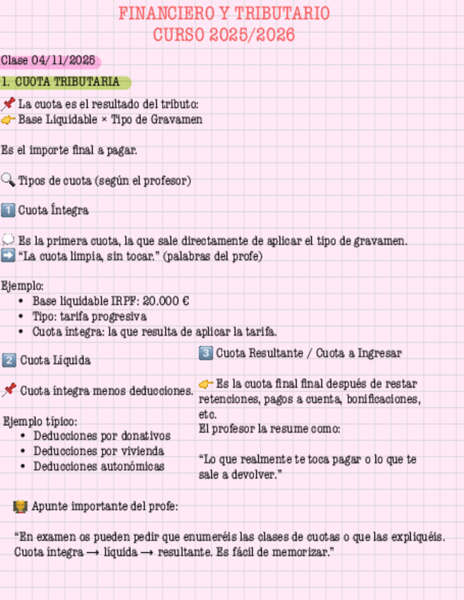 ? Apuntes completos y resumidos de la primera clase de Derecho Financiero y Tributario I (1.1). Contienen explicaciones claras, ejemplos del profesor y los conceptos esenciales para entender la materia desde cero. Perfectos si quieres empezar la asignatur