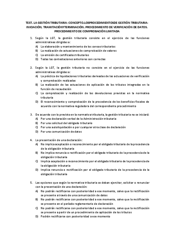 He publicado nuevos apuntes de 2º DERECHO FINANCIERO Y TRIBUTARIO I.2: PROCEDIMIENTOS TRIBUTARIOS: gestion-tributaria.-test.pdf