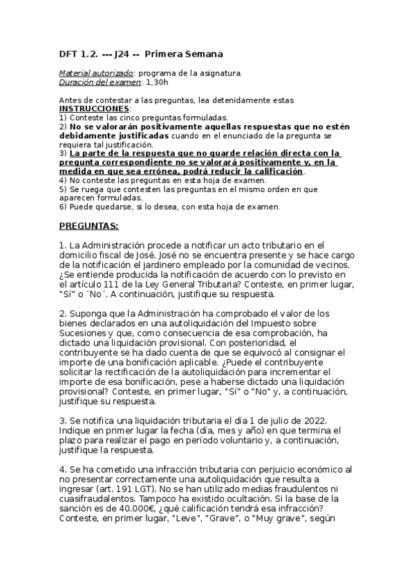 He publicado nuevos examenes de 2º DERECHO FINANCIERO Y TRIBUTARIO I.2: PROCEDIMIENTOS TRIBUTARIOS: DFT-1.2.-Examen-primera-semana-junio-2024.docx