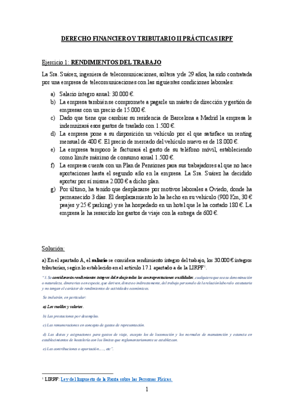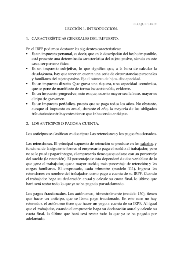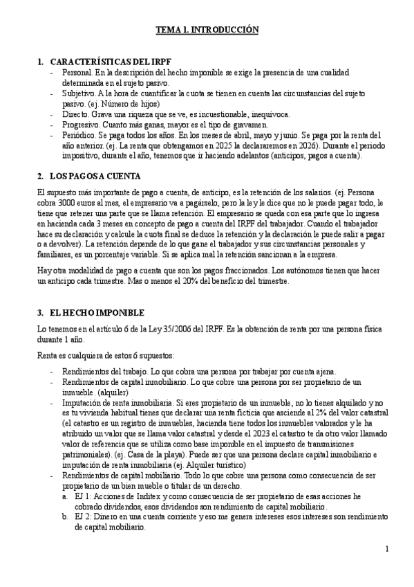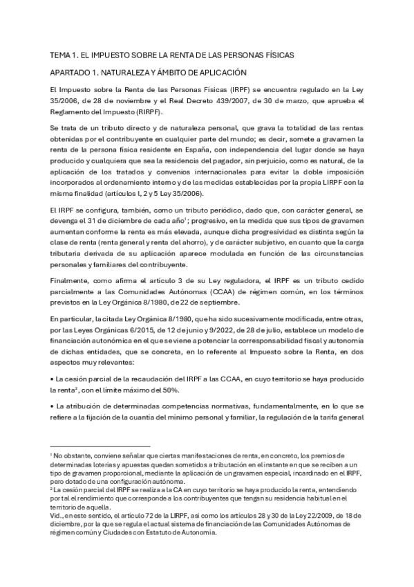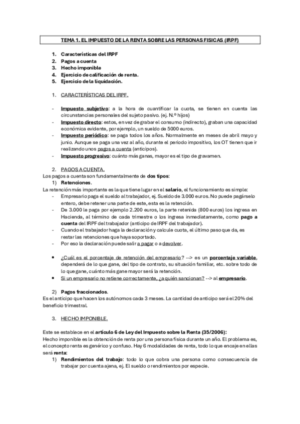 DERECHO FINANCIERO 1º CUATRIMESTRE. TEMA 1. EL IMPUESTO DE LA RENTA SOBRE PERSONAS FÍSICAS