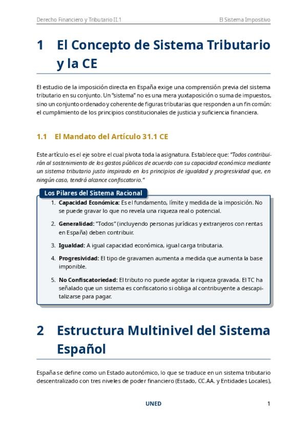 DERECHO FINANCIERO Y TRIBUTARIO II.1: IMPOSICIÓN DIRECTA